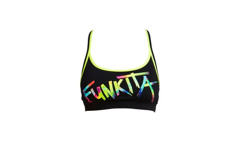 Schwarzes Bikini Oberteil mit leuchtendem Schriftzug von FUNKITA